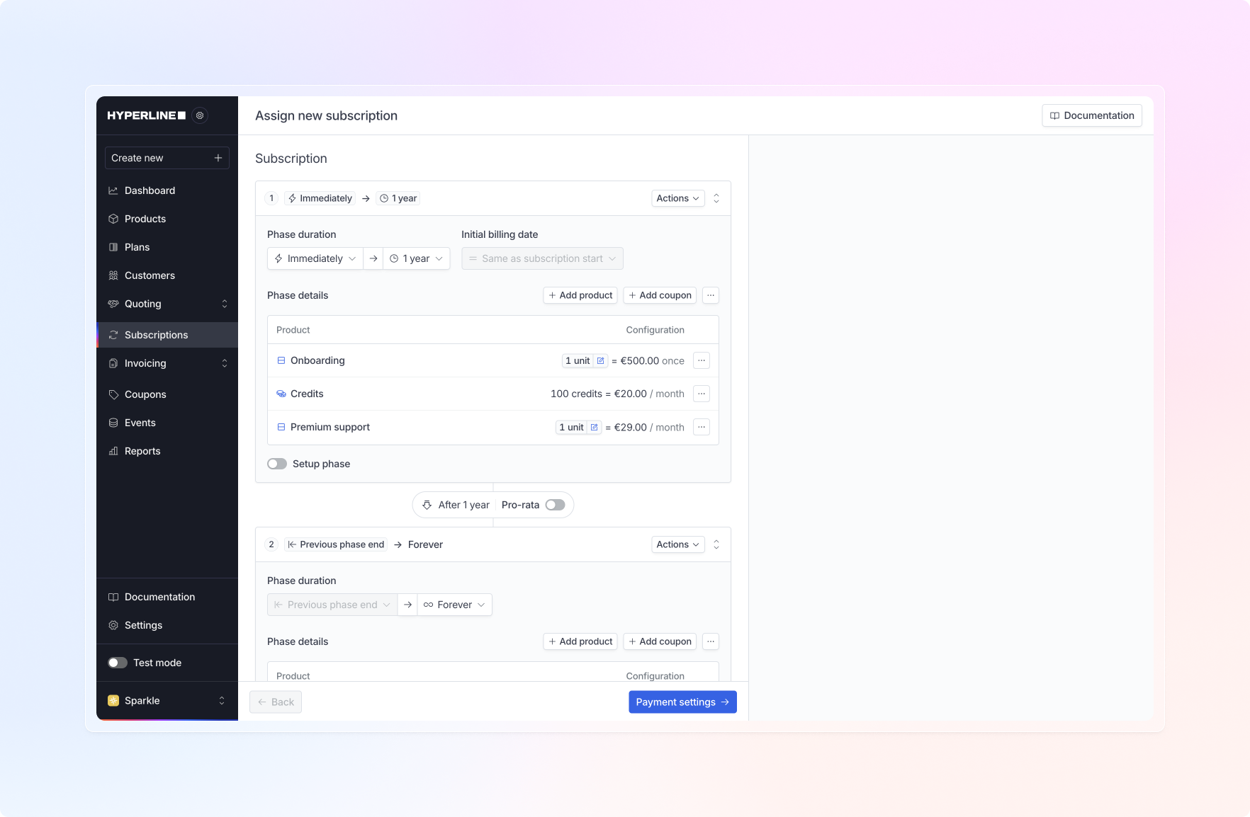 One of our most requested features for the end of the year! We’ve released advanced capabilities for subscription configuration. You can now set up multiple phases in a subscription, enabling you to represent ramp deals, multi-year contracts, or multiple contract milestones (e.g., a setup phase followed by a recurring subscription), and more. This important new feature allows you to manage enterprise-grade quotes, contracts, and subscriptions within Hyperline. It’s also directly available from Salesforce or HubSpot!