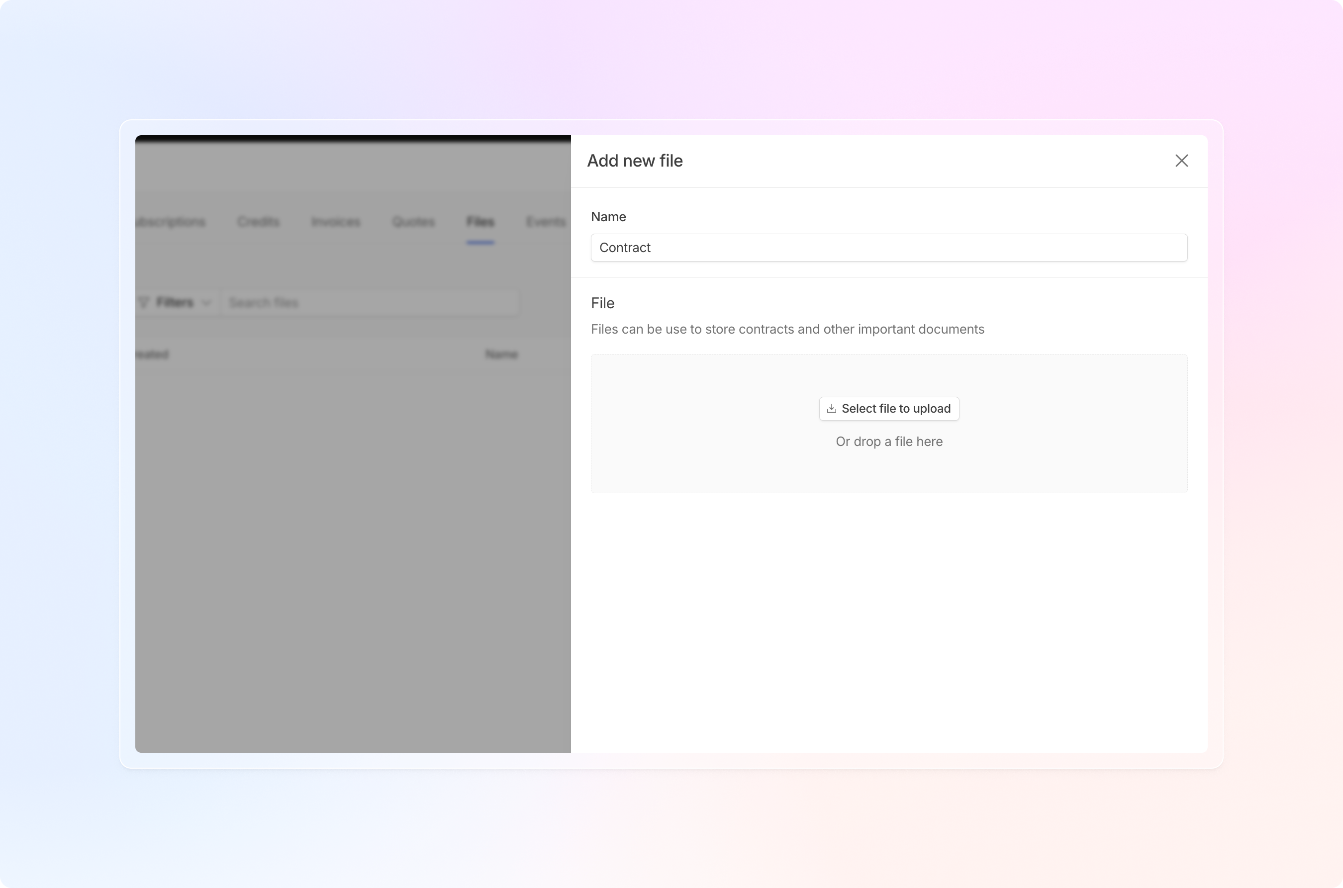We’ve added a new feature that allows you to upload files linked to your Hyperline customers. This can be useful for storing any additional documents (context, contracts, internal docs, etc.).