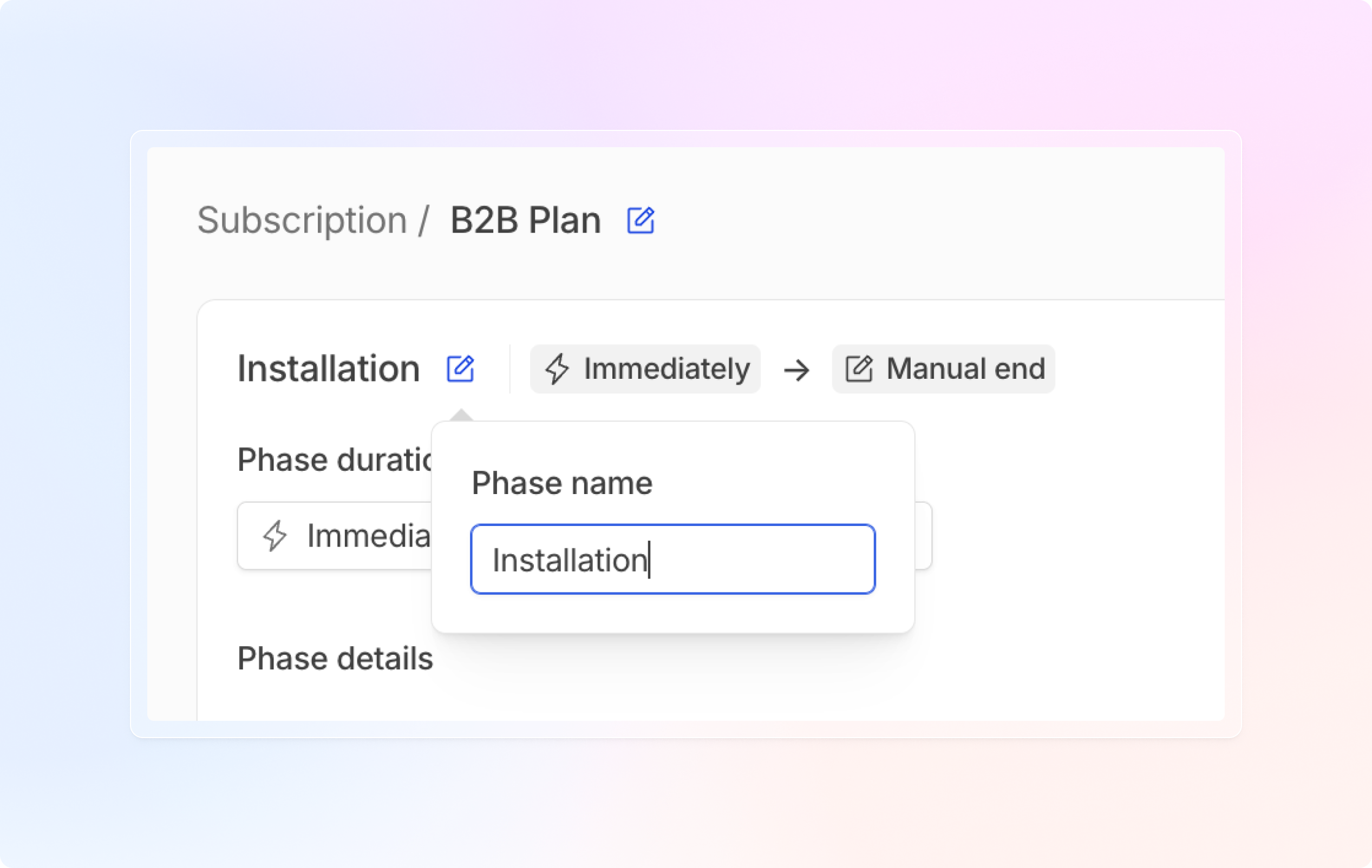 You can now customize subscription and phase names to better reflect your business needs. These names are displayed on the quote and subscription checkout pages to your customer.