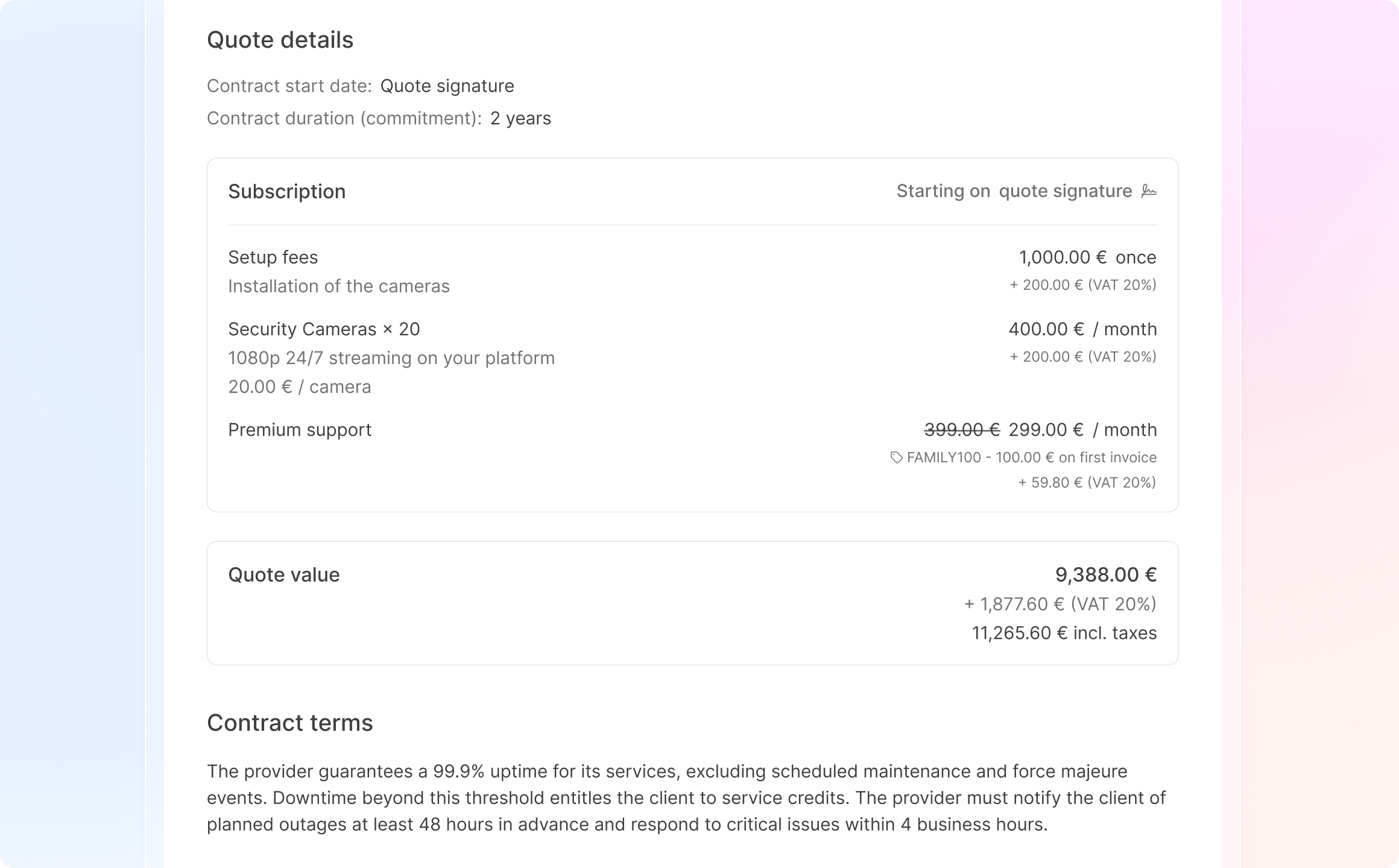 We’ve updated the Hyperline quote PDF to enhance clarity and improve the layout, allowing additional details to be displayed. The quote for subscription updates now highlights differences between the previous and new configurations, offering greater transparency. This is especially useful for upselling, cross-selling, and contract changes.