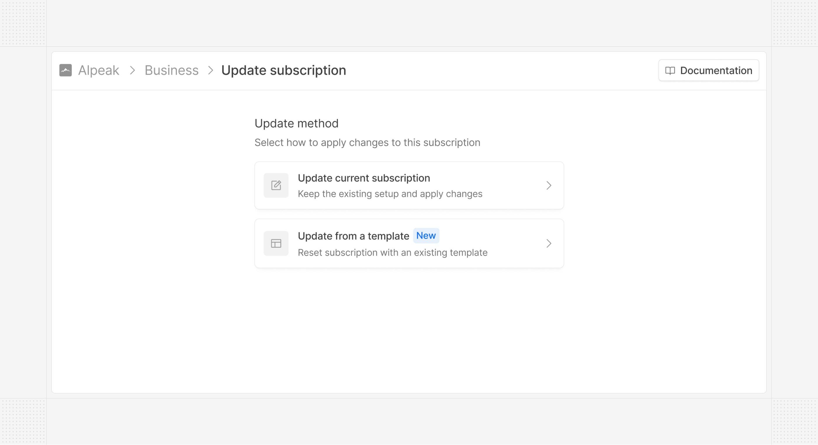 We’ve begun rolling out new flows for updating existing subscriptions, offering both simpler and more advanced options. You can now update a subscription using an existing template (or plan) or edit subscription details with enhanced versioning support.