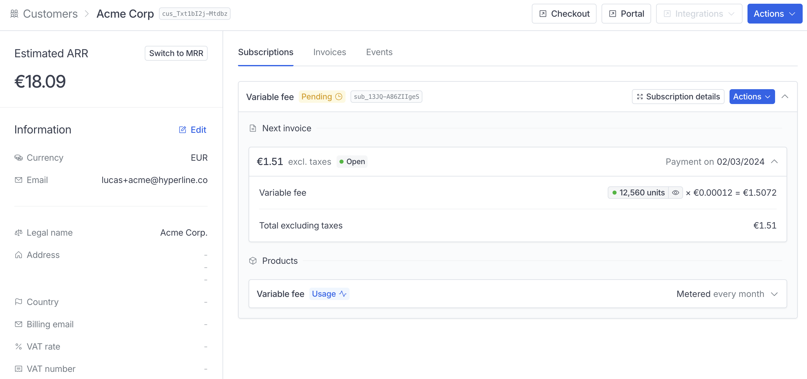 option, you’ll be redirected to the customer page, the subscription should display the current usage.